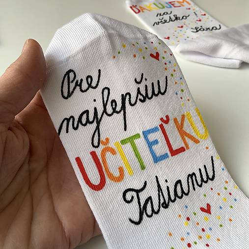 Aj vaša pani učiteľka je najlepšia na svete? Tak možno ju potešia tieto originálne maľované ponožky s nápisom
